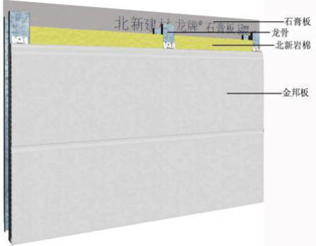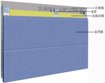 金邦板可直接作为厂房外维护墙材,,,,,其导热系数仅为彩钢板的千分之六,,,,,因此具有优异的隔热性能。。。。。。。