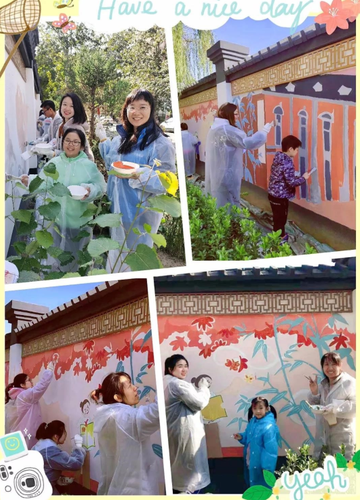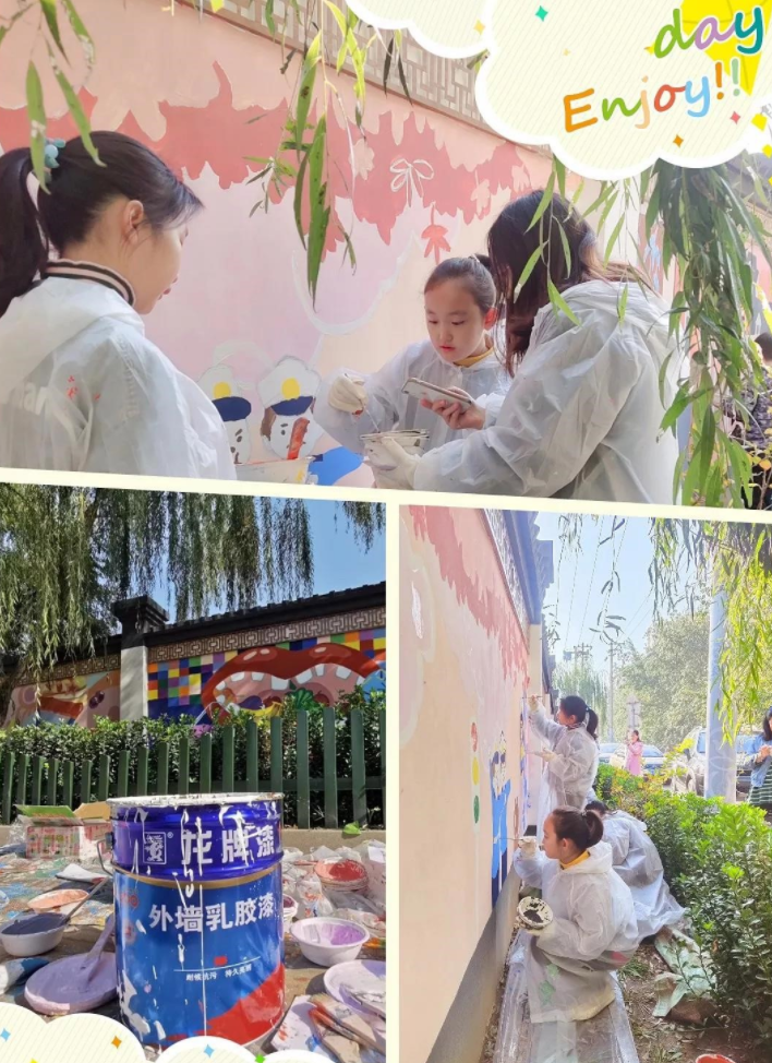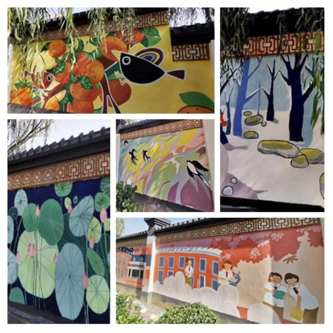 经由两天的起劲,,,,,,,一幅幅色彩亮丽、动感十足的画卷跃然墙上,,,,,,,学校外墙面目一新,,,,,,,不但美化了整体情形,,,,,,,还起到了优异的宣布道育作用,,,,,,,受到宽巨匠生、周围住民的一致好评。。。。。。。