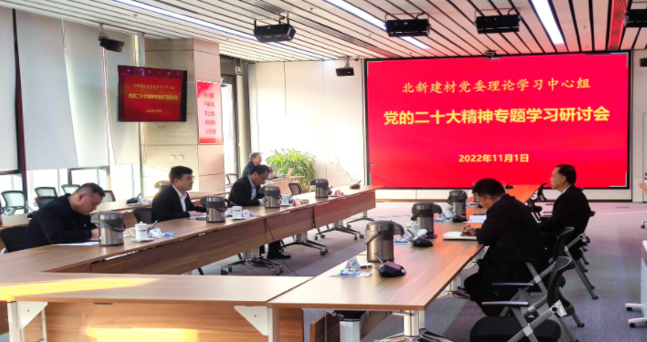 a11月1日,,,,,优德88官方网站中文版建材党委理论学习中心组召开学习钻研会,,,,,专题学习党的二十大报告、决议等内容,,,,,交流学习心得体会。。。。。。党委书记、董事长尹自波主持聚会并作重点讲话。。。。。。公司向导班子成员集中学习并团结公司下一步生长和事情现实交流钻研。。。。。。